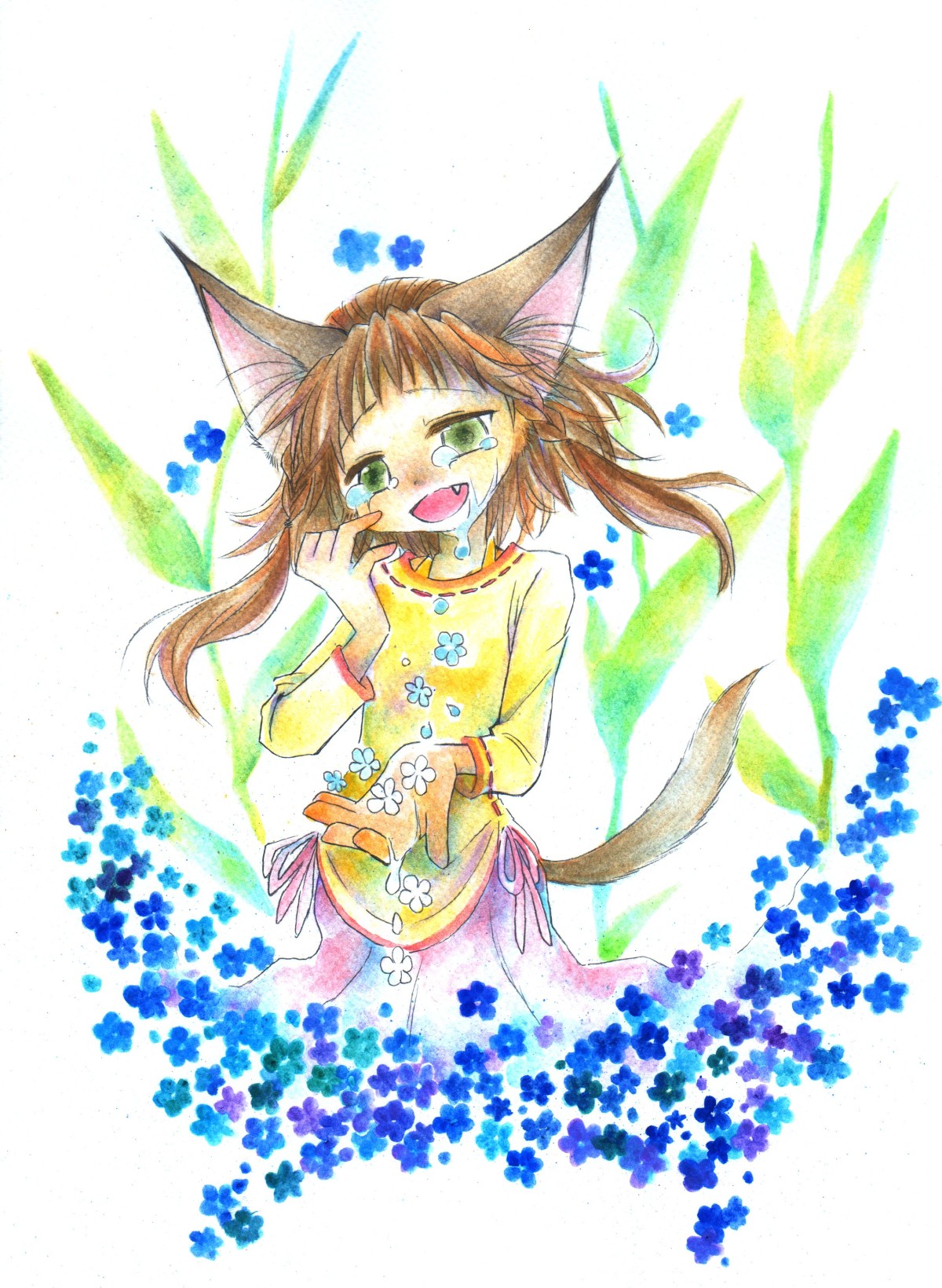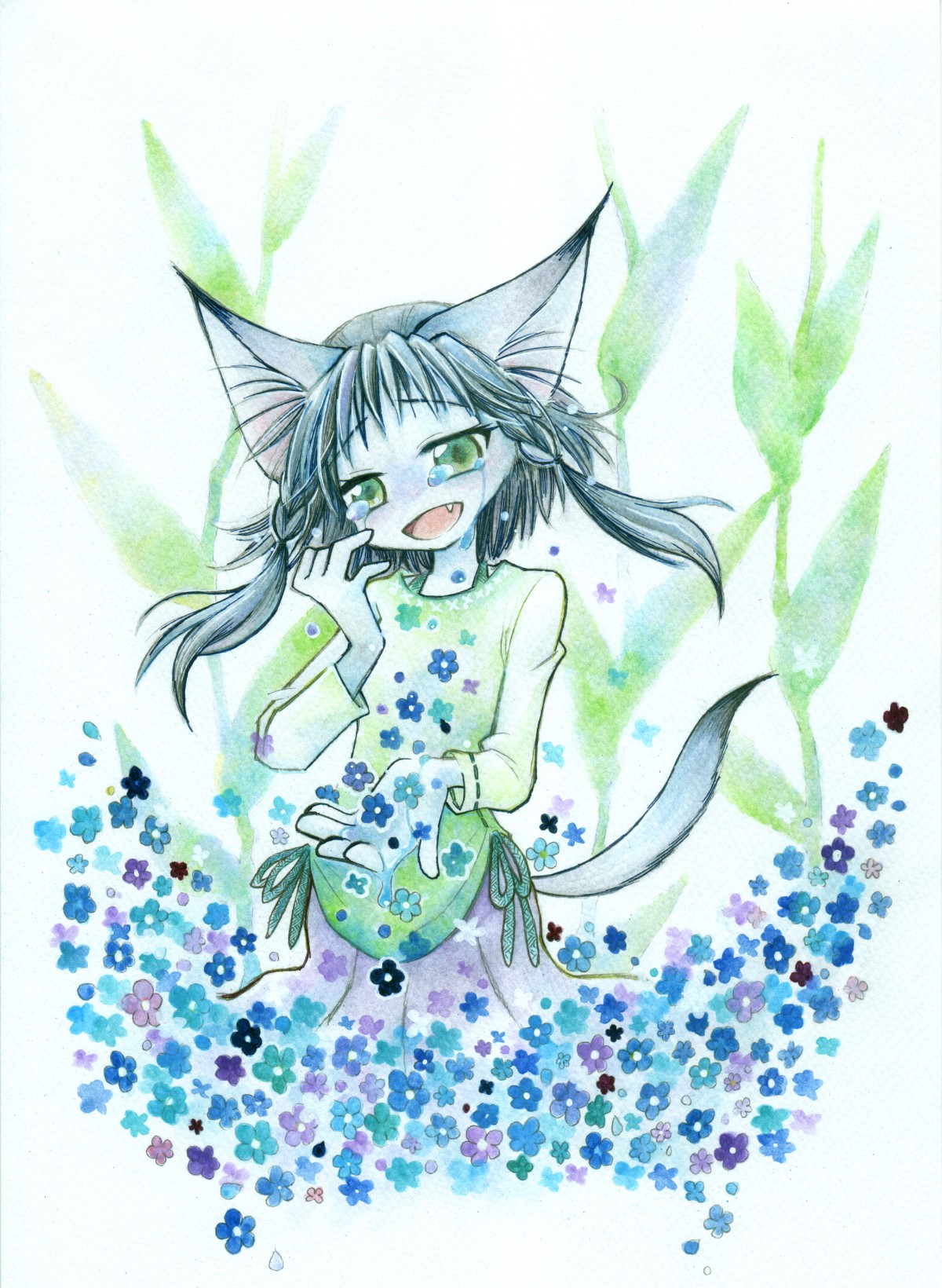 涙が花になっているのか、涙が花のように見えるのか、そんな感じのイメージ。